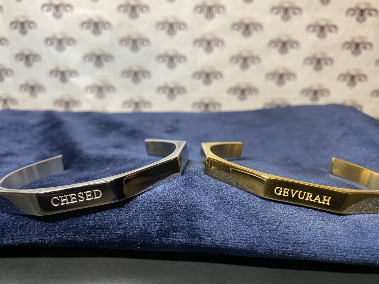 Thick Bangle Set: 6 cm inner diameter, 19cm circumference, 1/4 in wide, metallic silver Chesed and Metallic Gold plated